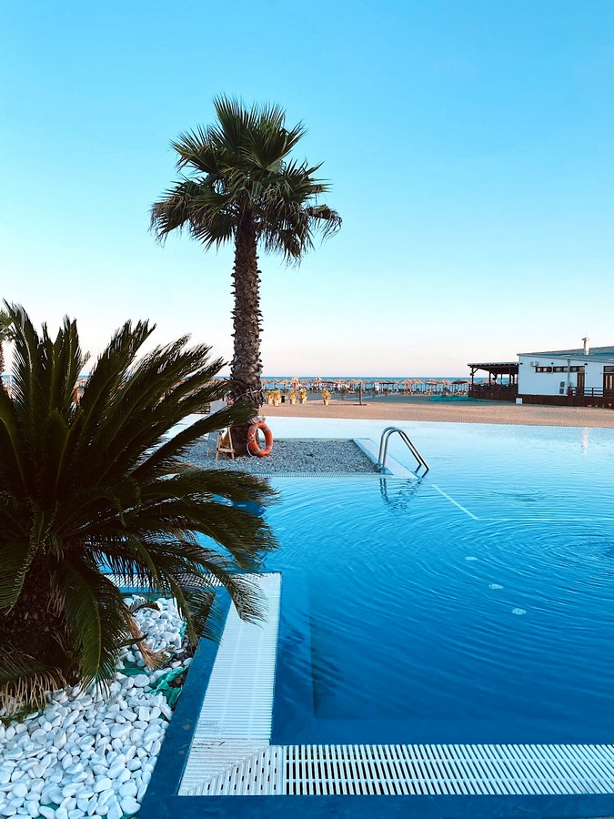 Resort se nachází přímo u dlouhé pláže, která je součástí Ulcinjské riviéry – malebné oblasti na jihu Černé Hory, blízko albánských hranic. Historické centrum města Ulcinj je vzdálené přibližně 5 km. Součástí hotelu je rozsáhlý bazénový komplex, nedaleko se navíc nachází i aquapark (za poplatek – není součástí hotelu). Hosté se mohou ubytovat v moderních pokojích, vilách nebo ve swim-up apartmánech s přímým vstupem do bazénu. V resortu je několik vynikajících restaurací a barů (některé na zastřešených terasách s přímým výhledem na moře). V hotelu lze dále využít sportoviště (fotbal, tenis, volejbal, venkovní tělocvična), animační programy pro děti i dospělé, vnitřní hernu nebo lanové centrum.