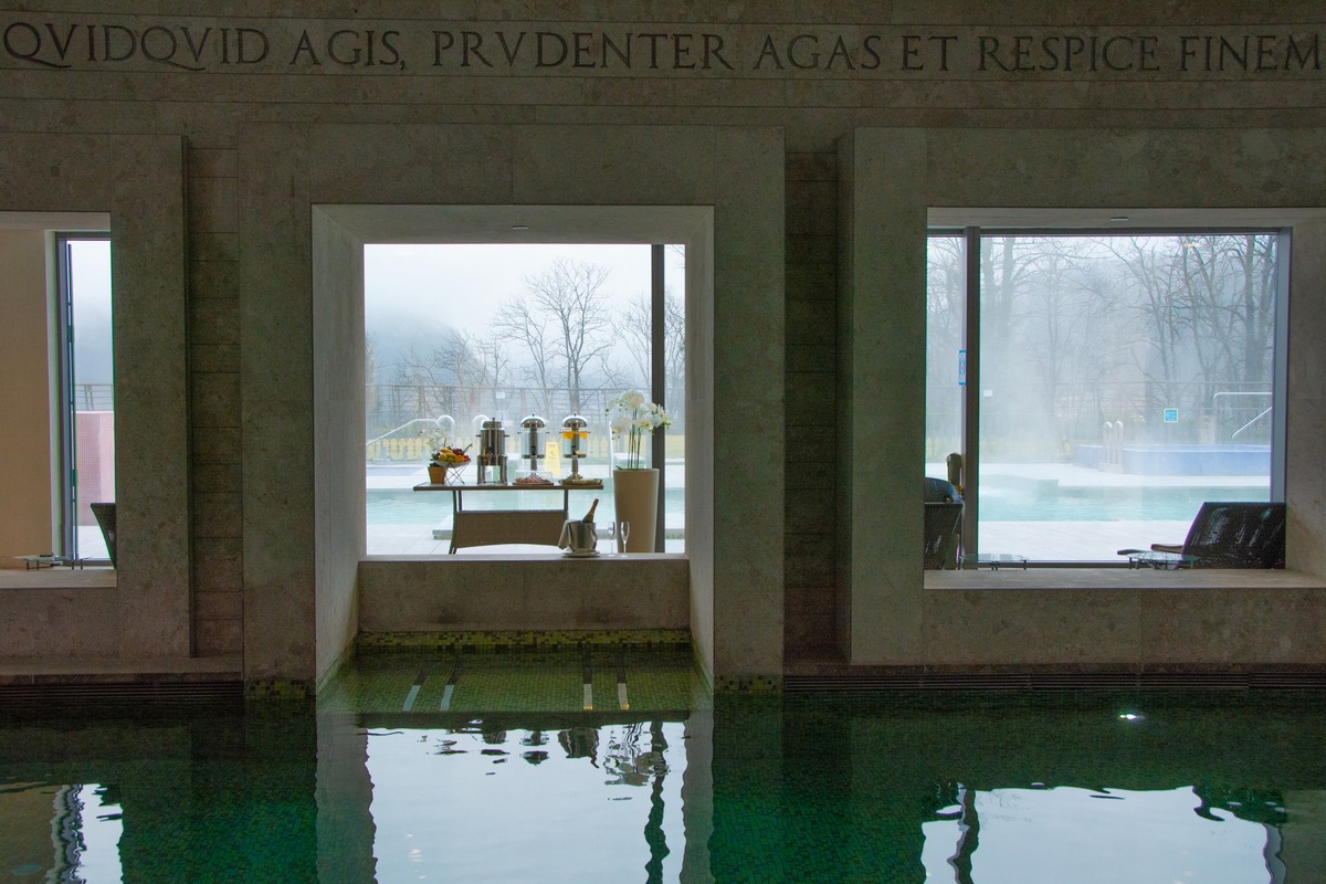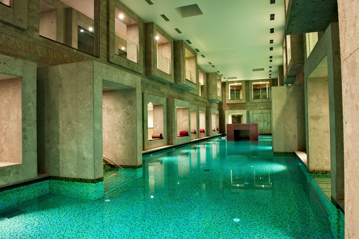 - Vnitřní plavecký bazén ve stylu římských lázní (teplota 32 °C)