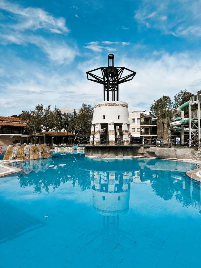 Rozsáhlý plážový komplex fungující v režimu ultra-all inclusive se skládá z hlavní a několika menších budov. Nachází se poblíž města Kemer v provincii Antalya, tedy v lokalitě, kde se setkávají hory a moře, a jejíž území je prostoupeno čistým horským vzduchem. Letovisko Kemer se nachází 8 km od hotelu a z hotelu je pohodlně dostupné kyvadlovou dopravou. Resort zajišťuje pestré vyžití jak u vodních, tak i u mimovodních aktivit. V jeho bezprostřední blízkosti se nachází písčitá pláž s oblázky, ze které je přenádherný výhled na pohoří Taurus. Hostům jsou dále k dispozici bazény, vodní park, a dále pak různá hřiště a sportoviště.