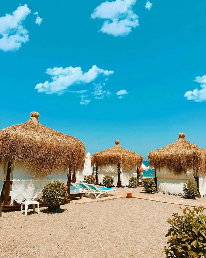 - Písčitá pláž s obrázky (lehátka a slunečníky zdarma)