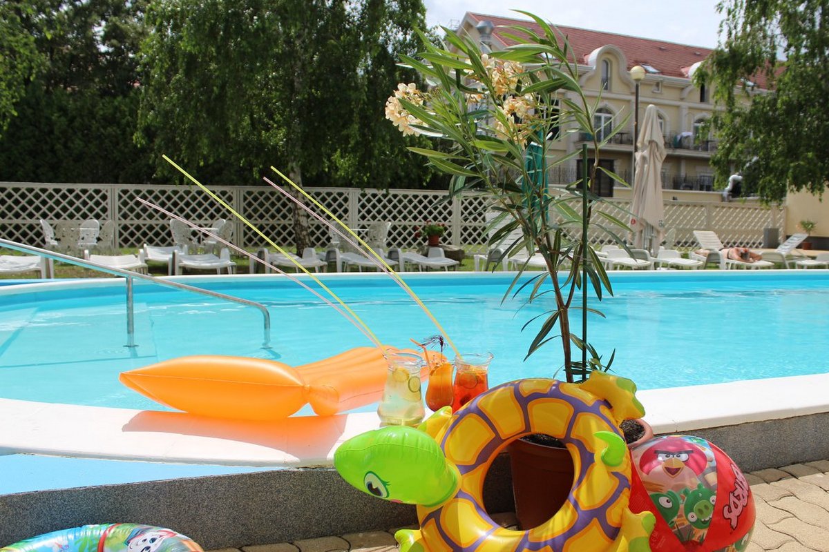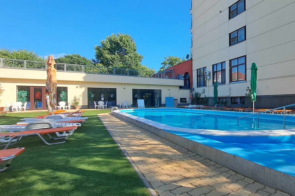 - Venkovní bazén s normální vodou (sezónní, vedle hotelové budovy)