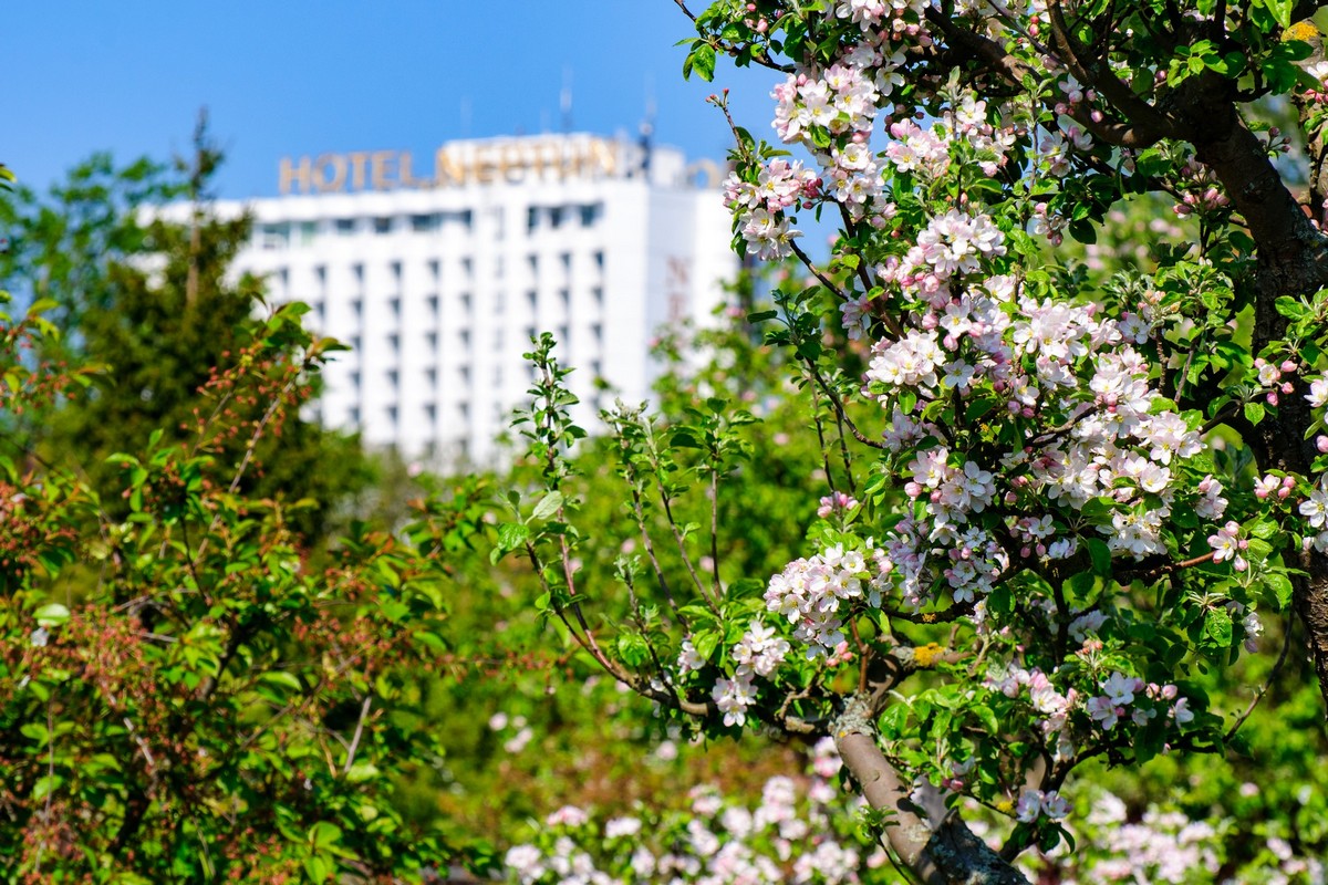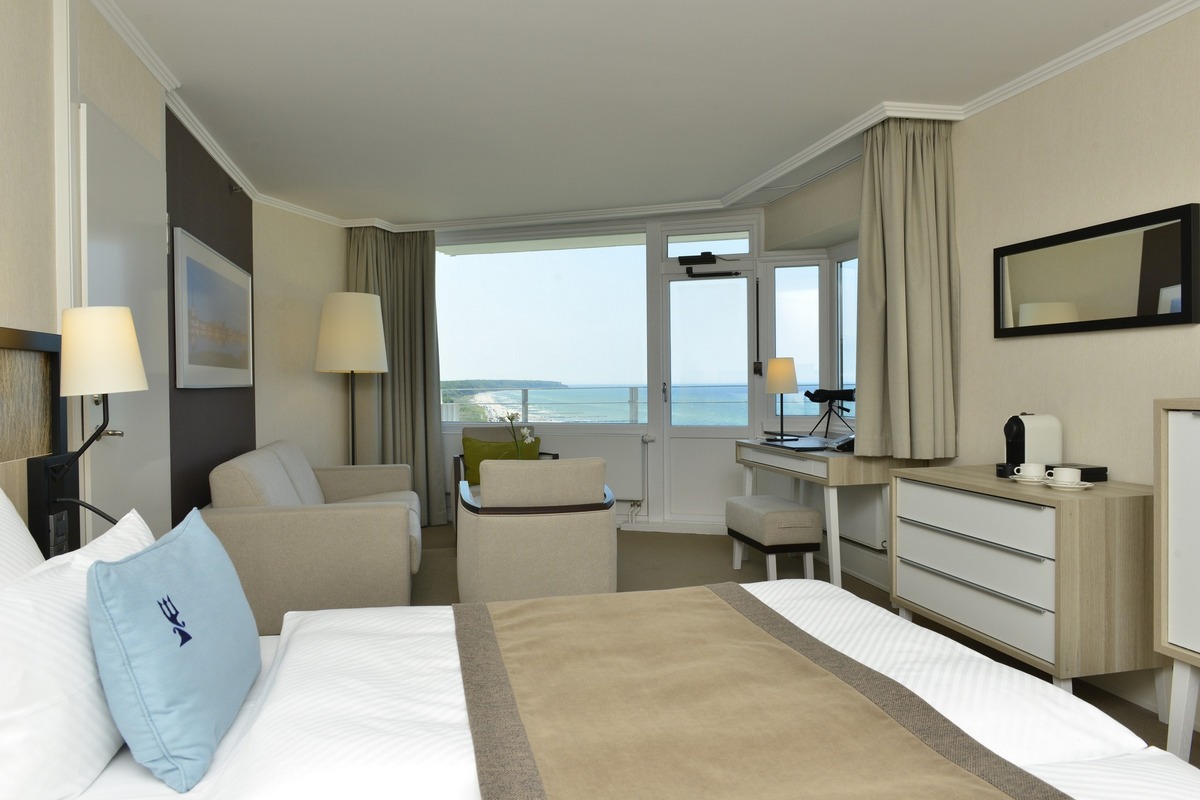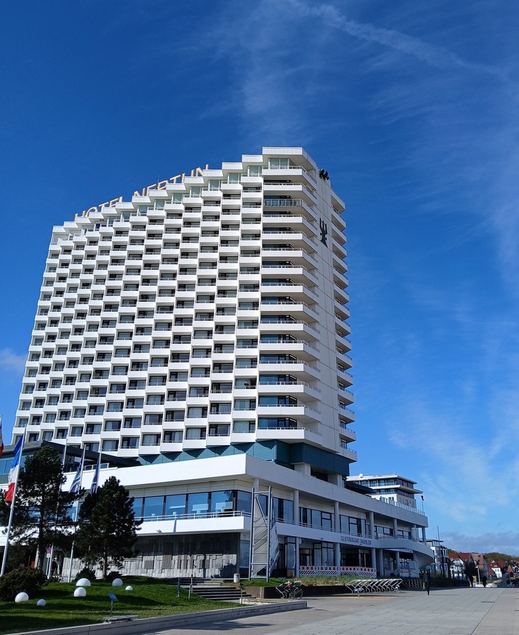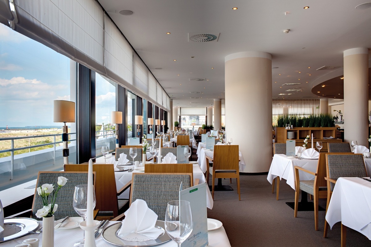 Resort se nachází přímo u pláže ve čtvrti Warnemünde – městské části přístavního města Rostock. Pár minut chůze od budovy se nachází plážová promenáda, a díky dostupnosti hromadné dopravy pak lze v okolí navštívit např. muzeum lodního stavitelství, historickou městskou bránu (Kröpeliner Tor), ZOO, přístav nebo lodní maják (Maják Warnemünde). Hotel nabízí různé typy luxusně zařízených pokojů, z nichž některé disponují výhledem na moře. V oblasti stravování je hostům k dispozici restaurace, gril, vinotéka nebo bar + kavárna s panoramatickým výhledem. Součástí hotelu je rovněž krytý bazén a wellness zóna (celková plocha 2 400 m²).