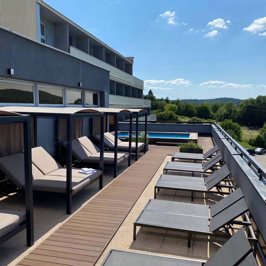 - Beach zóna na terase s mělkým bazénkem a lehátky