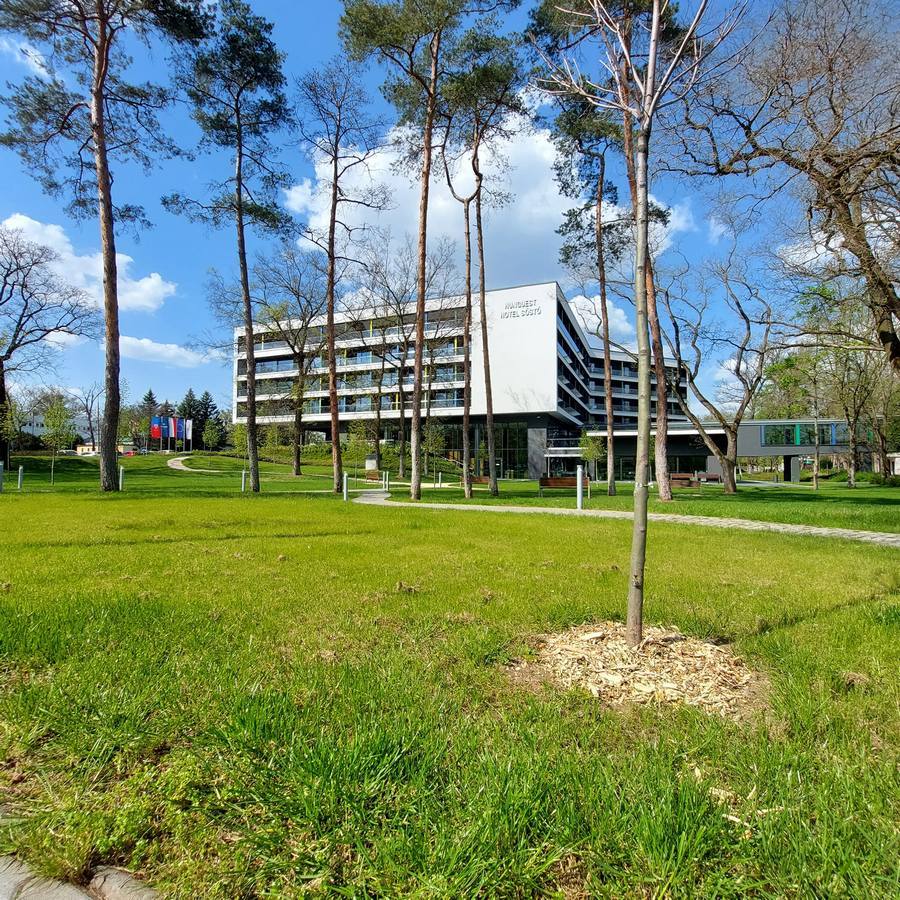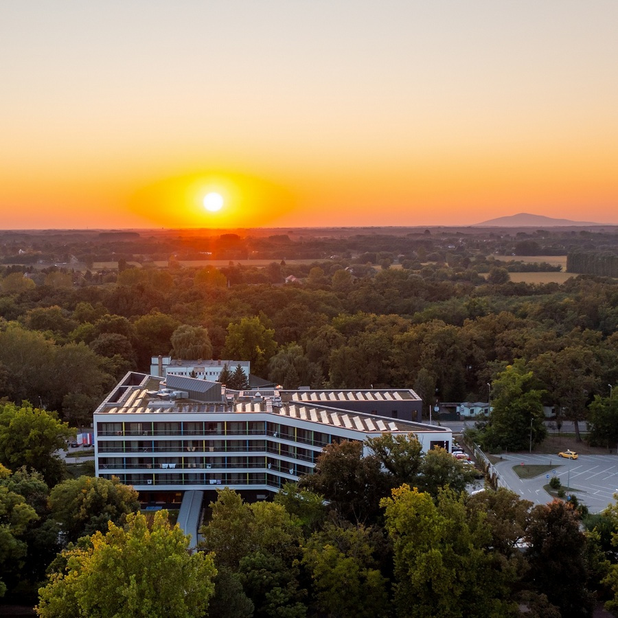Hotel se nachází v rekreační oblasti Sóstógyógyfürdő, asi 6 kilometrů od centra města Nyíregyháza. Tato oblast je v rámci Maďarska oficiálně uznaným léčebným místem, a je velmi populární mezi místními obyvateli a turisty. Hotel nabízí restauraci, wellness, dětské hřiště, a jeho buduva je přímo propojena s komplexem Termálních a zážitkových lázní Aquarius. Celý komplex zahrnuje celkem pět termálních lázní: Aquarius Spa, Park Spa (venkovní areál fungující pouze během letní sezóny), Lake Spa, Júlia Spa a Hotel Bath House.