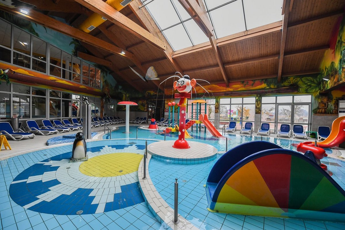 - Bazén s vlnobitím, tobogán, obří skluzavky