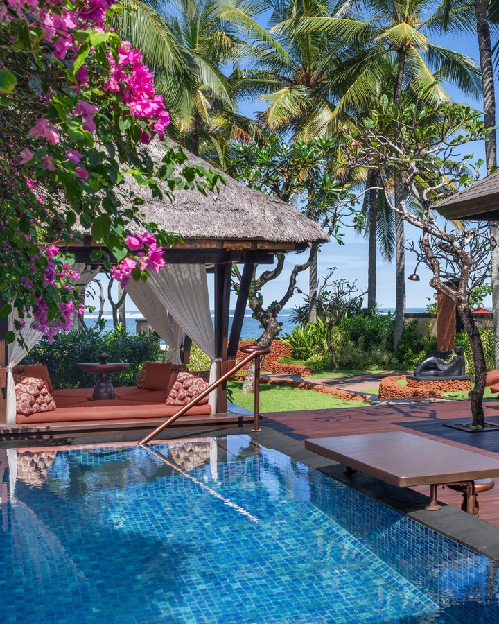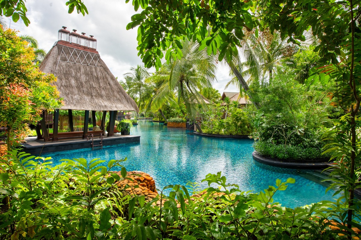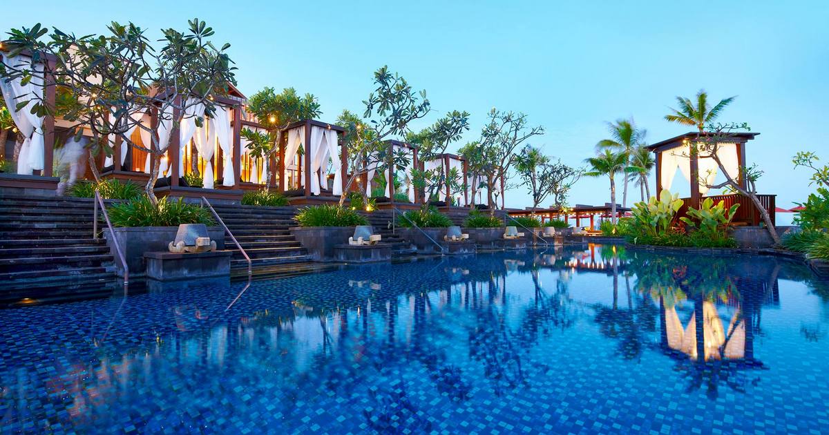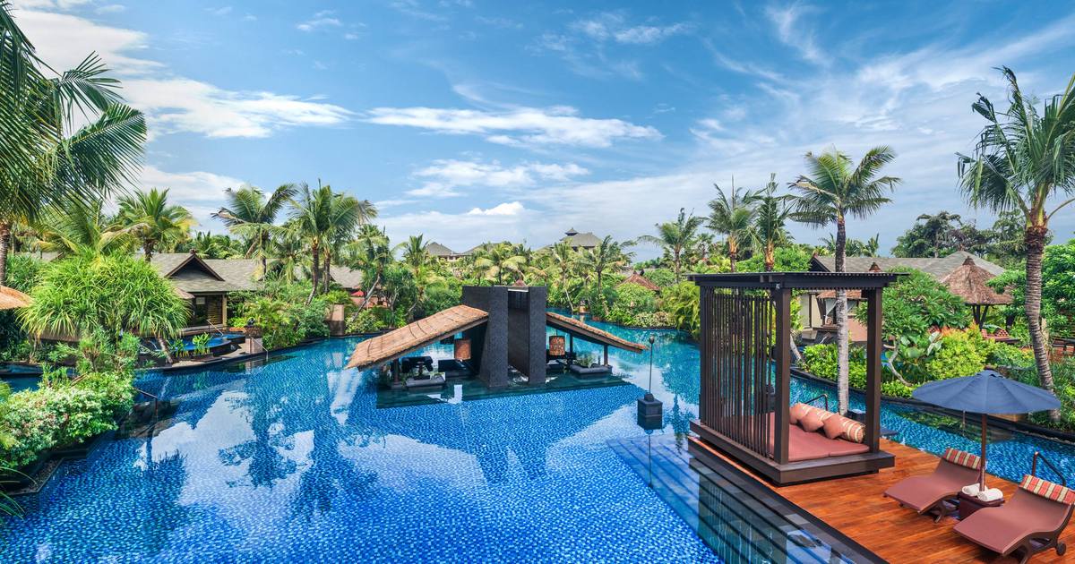 Resort se nachází na klidné a zároveň velkolepé pláži Nusa Dua v jižním cípu ostrova Bali. Zdánlivě nekonečně se táhnoucí pláž Nusa Dua je tvořena jemným pískem, a v jejím širším okolí se nacházejí různé restaurace, bary nebo sportoviště (včetně golfových hřišť). Hotelové pokoje, apartmá a vily zahrnují venkovní prostor a poskytují výhled do zahrady, na bazén nebo na pláž (vily a rezidence mají přímý přístup na pláž). Resort zahrnuje několik jedinečných restaurací a barů, které přináší exkluzivní kulinářské zážitky. V rámci hotelu lze dále využít transfer z letiště, půjčovnu kol, dětské centrum, hernu, fitness centrum, bazén nebo lázně.