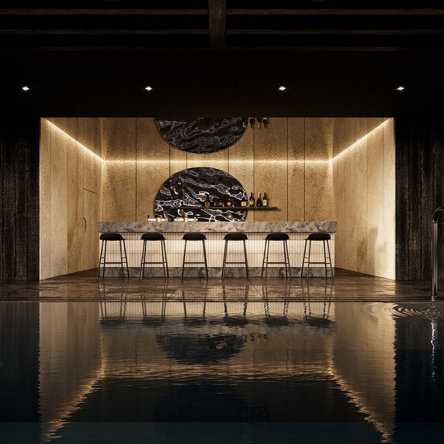 - Vnitřní a venkovní jacuzzi, bazénový bar